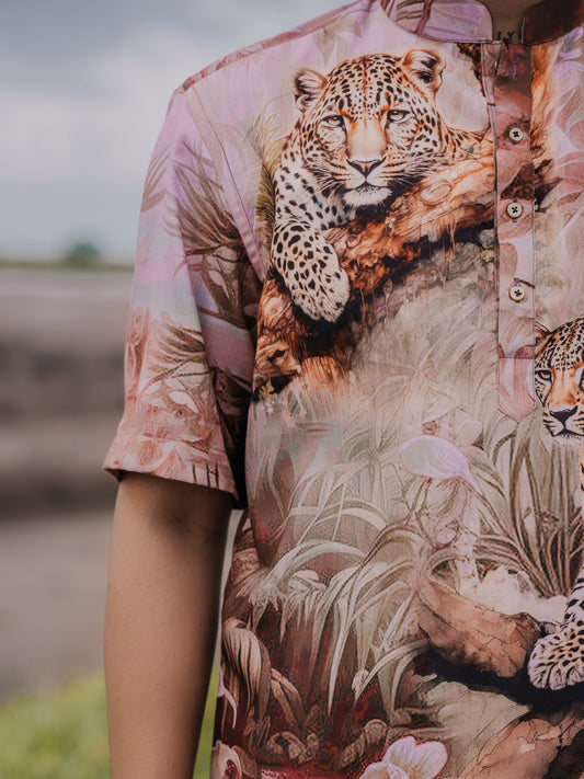 Stylish Peach Leopard Printed Shirt Kurta for Men – Modern Ethnic