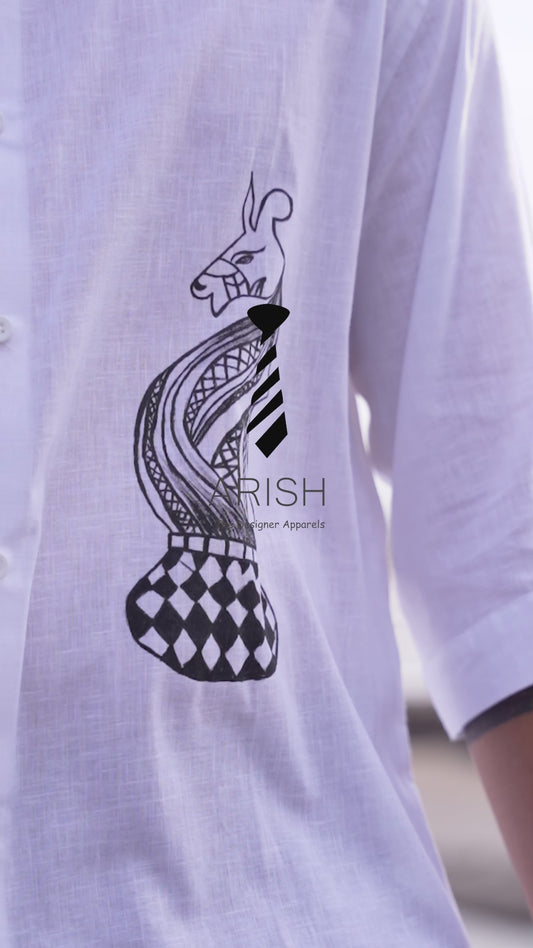 Stylish White Shirt for Men | Trendy Hand Paint Shirt Cotton Linen