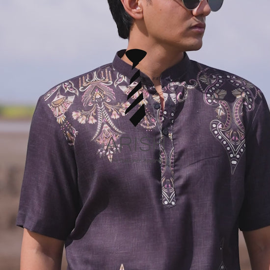 Modern Ethnic Black Printed Cotton Linen Shirt Kurta for Men