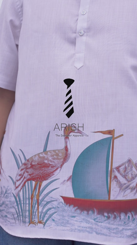 Peach Cotton Linen Stylish Men’s Printed Kurta Shirt – Beachwear Fashion