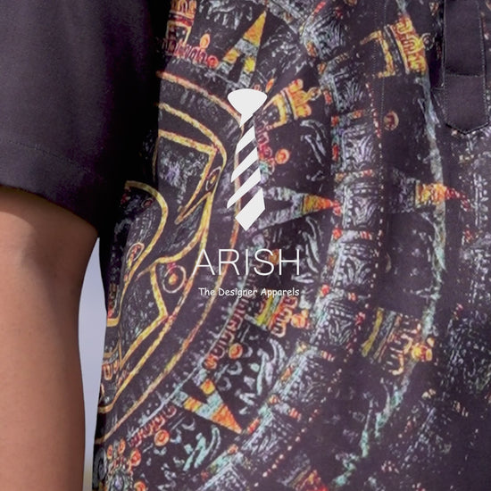 Step up your festive fashion with this elegant black printed shirt kurta styled with classic beige pants. A perfect blend of tradition and modernity, ideal for weddings, celebrations, and cultural events.