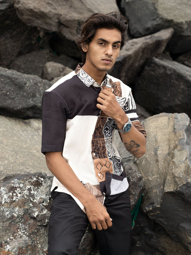 Trendy Patchwork Printed Cotton Line Shirt for Men – Patchwork Fashion