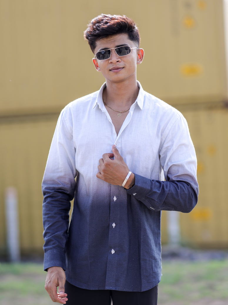 White Grey Cotton Linen Ombre Shirt for Men – Trending Casual Wear